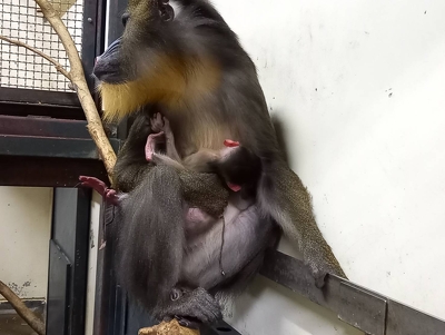 今から約1年前の2023年8月30日の朝、母親「マンゴー」にしっかりと抱かれた「リンゴ」の誕生を確認しました。「マンゴー」は2回目の出産ということもあってか、落ち着いて子育てを始めました。ちなみに、マンドリルの妊娠期間は170日前後といわれていますが、「リンゴ」は166日で生まれてきました。