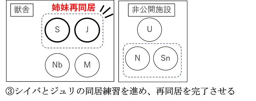③シイバとジュリの同居練習を進め、再同居を完了させる
