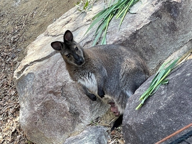 【動物ブログ】飼育日記 ベネットアカクビワラビー 「ウメの子どもが顔を出しました」 2022年03月07日(月) ベネットアカクビワラビー ベネットアカクビワラビーの「ウメ」の子どもが3月5日の朝に顔を出しました。 「アオ」の子どもとは約一か月遅れで顔を出したので、一か月間での成長の違いを見ることができます。ぜひ「アオ」「ウメ」の子どもに会いに来てください。