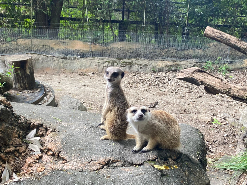 【動物ブログ】飼育日記 ミーアキャットの展示練習 2024年09月20日(金) 飼育日記 2024年6月にいしかわ動物園よりミーアキャットの「ノドジロウ」(オス)「ハナ」(メス)がやってきました。 現在、「ノドジロウ」は「ヒョッコリ」(メス)・「チョコ」(メス)と、「ハナ」は「チップ」(オス)との同居を経て展示の練習を行っている最中です。 2頭とも外の世界に興味津々のようで、先輩達に付いて熱心に展示場内を探索しています。 正式な一般公開日は追ってホームページでお知らせしますので、楽しみにお待ちください。 上左「ノドジロウ 」右「ヒョッコリ」 下「チョコ」 左「ハナ」 右「チップ」