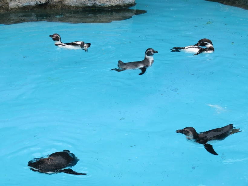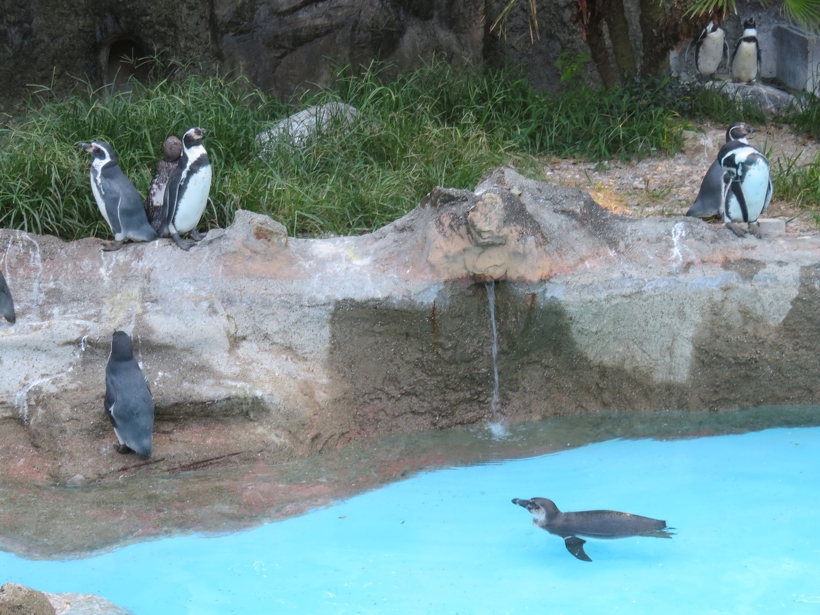 水がある程度溜まると、待ちきれないペンギンたちが早速ペンギンたちが泳ぎ始めます。