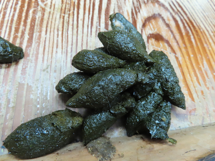 レッサーパンダは竹を主食としているため、実はうんちはあまり臭くありません。茶葉のような匂いがします。しかし竹をたくさん食べるため、ずっしりと密度の高いうんちを大量にします。また、レッサーパンダはなわばりを主張するための匂いつけ行動をするため、おしっこをあちこちにこすりつけます。特に繁殖期の冬になると、独特のケモノ臭が強くなります。うんち自体は決して臭くはありませんが、ヒトを含む他の多くの動物と同じように、無臭という訳にはいきません。