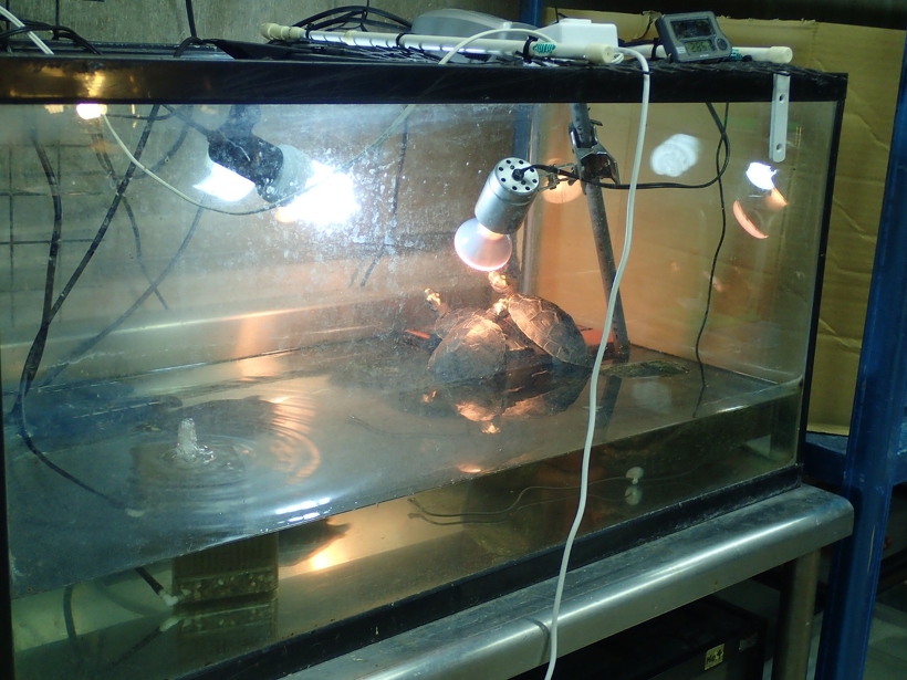 この水槽の中にいるのはモンキヨコクビガメです。これから展示をする予定ですが、展示水槽に移動するにはまだ小さいため、ここで大きく成長させてからデビューすることとなります。スクスク成長してますので、近いうちに展示できることでしょう。