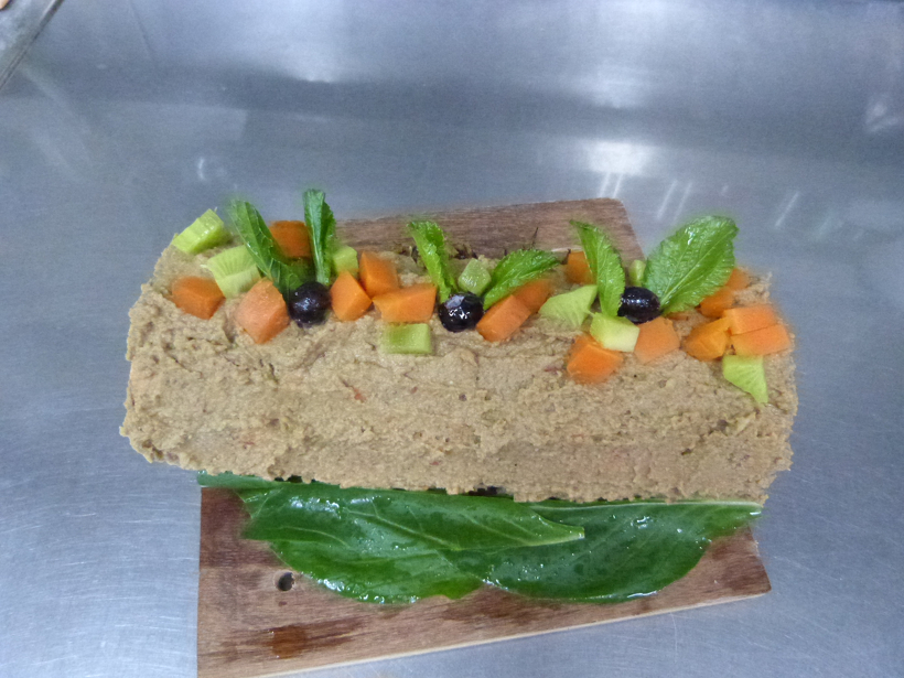 毎年恒例のブッシュドノエル風ですが、飾りはその年の気分で変わります。今年は、煮ニンジン、キウイ、ブルーベリー、コマツナをのせてみました。