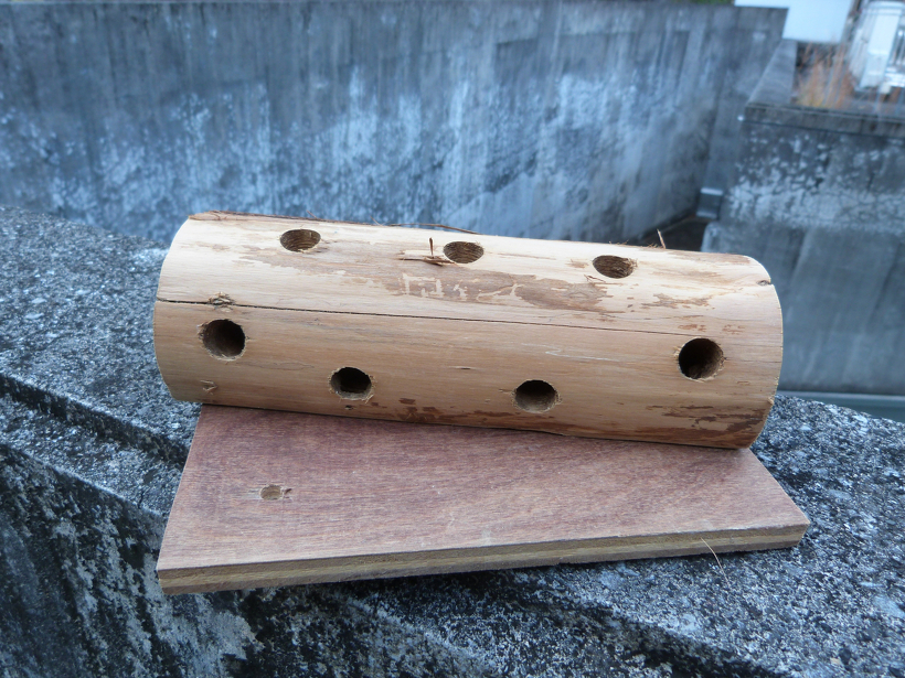 穴には「コア」(オス)が大好きなアリを詰めて、まわりにドロドロの餌を塗って飾りをのせたら出来上がりです。