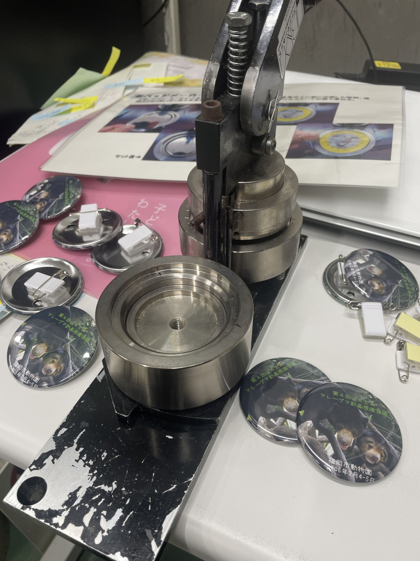 この会議は文字通り、日本の動物園のマレーグマ関係者が一堂に会し、マレーグマの現状や今後の展望について協議する場です。そのためのレジュメ等資料の作成や発表内容の調整など管理者としての業務は多岐にわたるのですが、最後の総仕上げとなる重要な仕事があります。それは「記念バッジ作り」なんです。そう、毎回開催地となる施設に関連したマレーグマをモチーフに記念バッジを作成しており、その作業を前日まで一人でゴトゴトやっていました。大変地味な作業ではありますが、会議の準備を一通り終えた後に自分が無になれる重要な精神統一の時間でもあります。