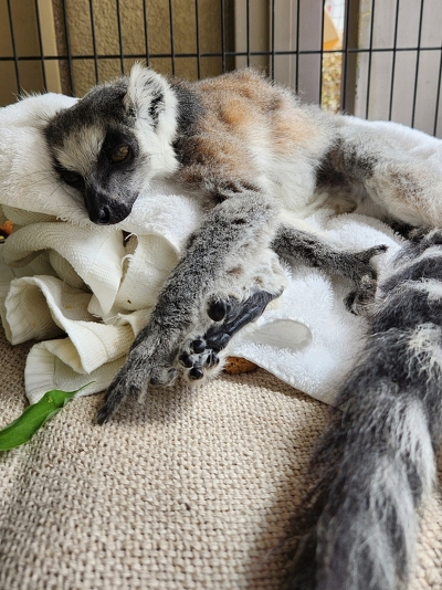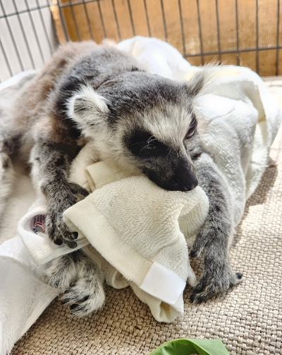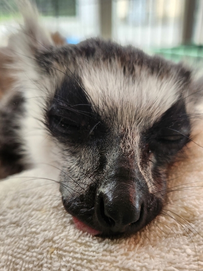 ワオキツネザルのコナツは、推定35歳のおばあちゃんです。