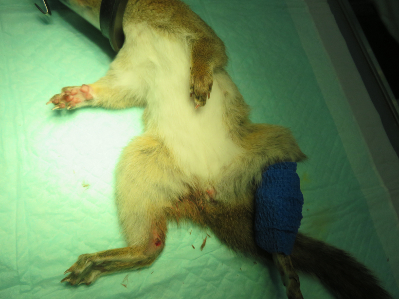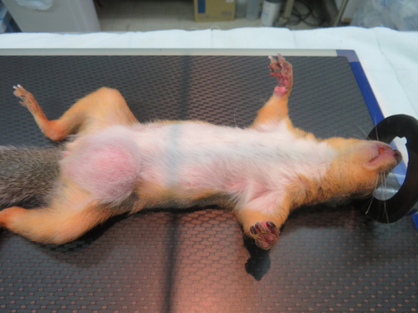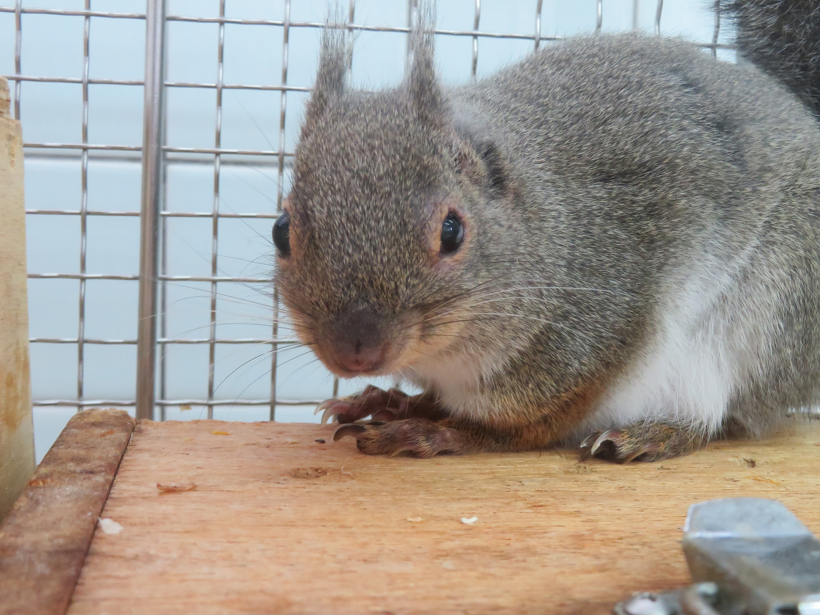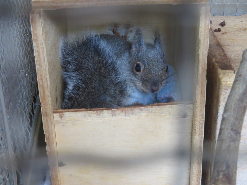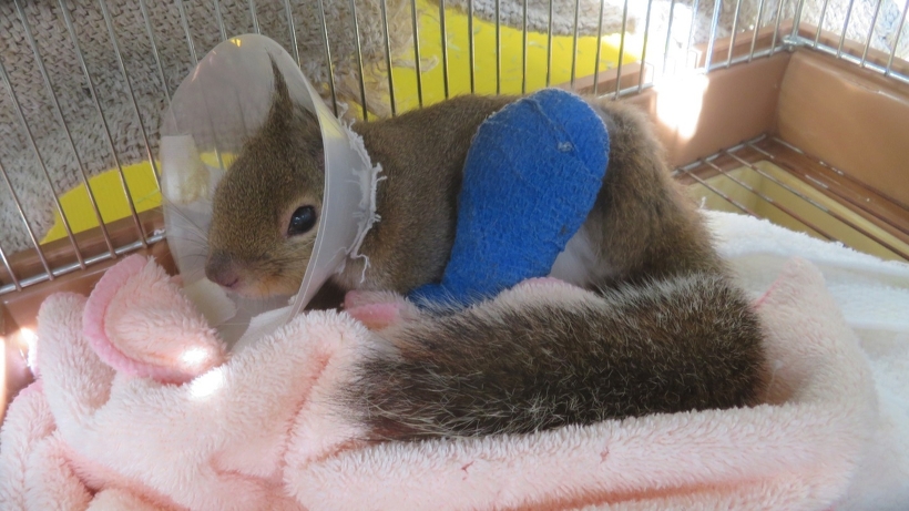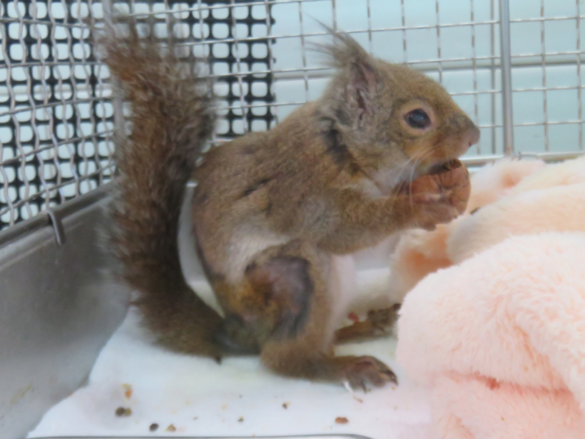 現在は骨折も皮膚も治ってきて、最近ようやくエリザベスカラーを外すことが出来ました。リスは本来手を使って餌を食べるので、さぞかし食べづらかっただろうと思います。