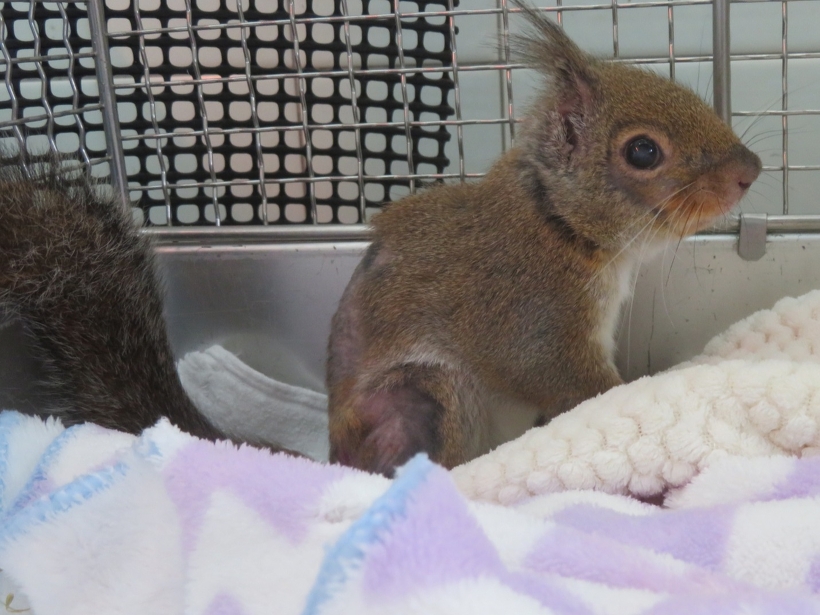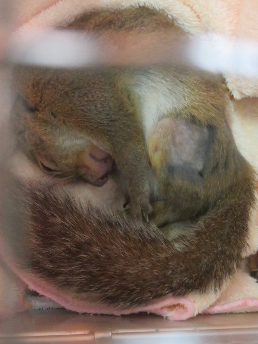 2頭とも長い入院生活で、少し人間に慣れてくれたのか、餌をねだって巣箱から出てきたり、かわいい寝姿を見せてくれたりしています。
