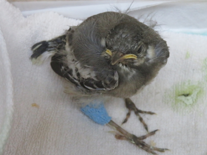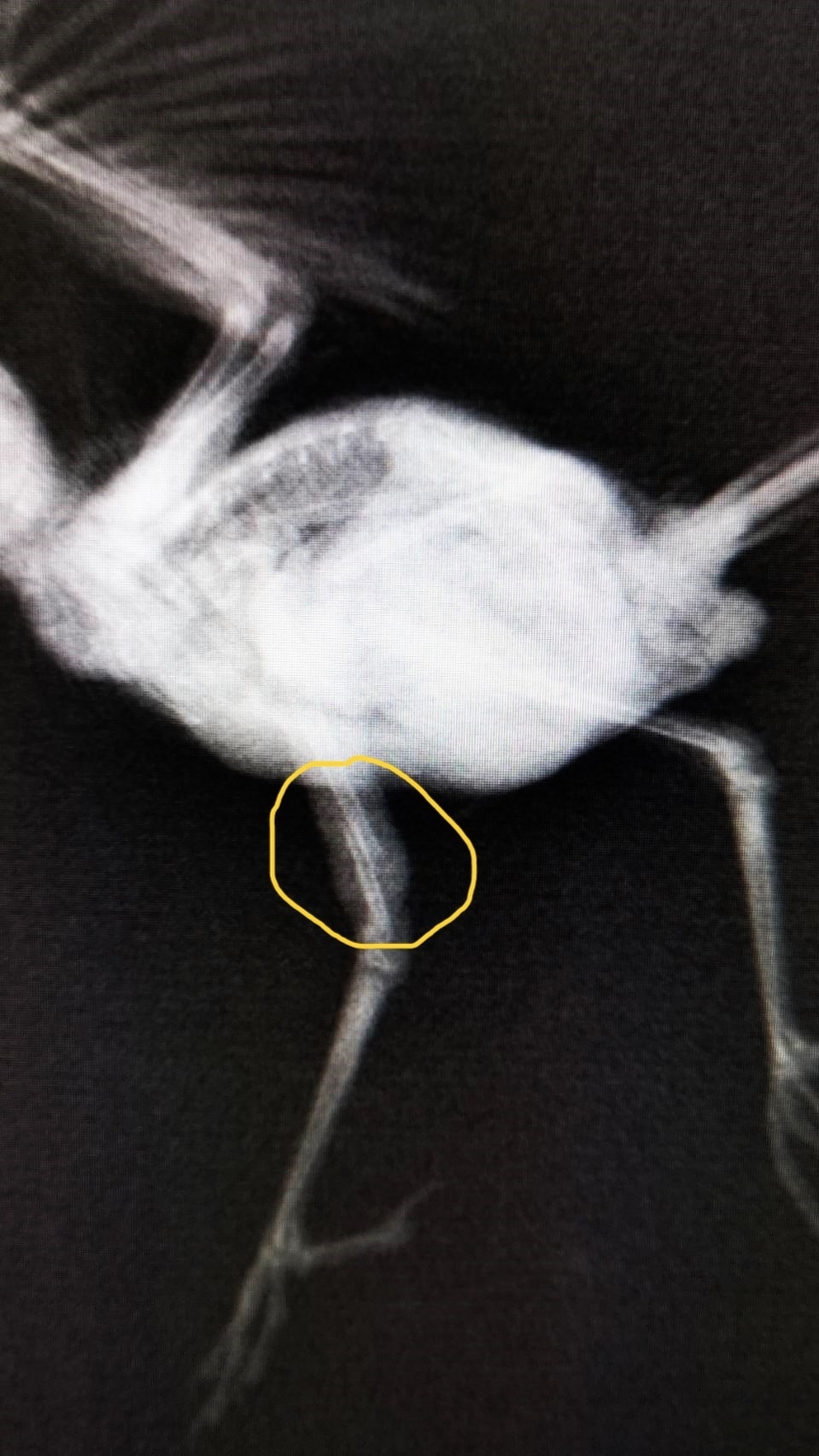 元気はありましたが右脚が変な方向を向いており、骨折していました。巣立ちの際に何らかの衝撃が加わってしまったのだと思われます。