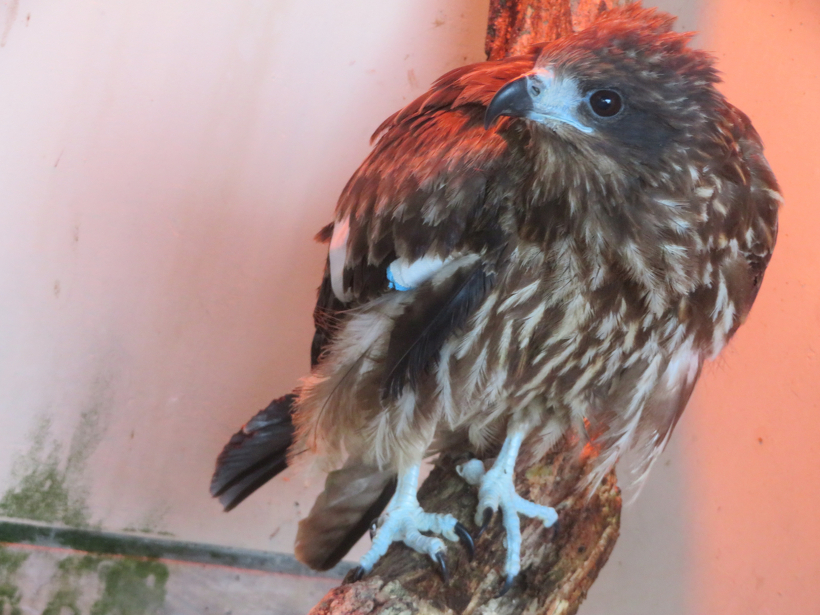 保護当日より食欲は旺盛で、少しずつ体重も増え、ギブス固定していた骨折も徐々に改善し、1か月後ギブスを外してみました。まだ、皮膚の傷が少し残っていたので軽く固定して安静にしていましたが、その後固定も外れて少しずつ飛ぶようになり、12月2日に放鳥しました。