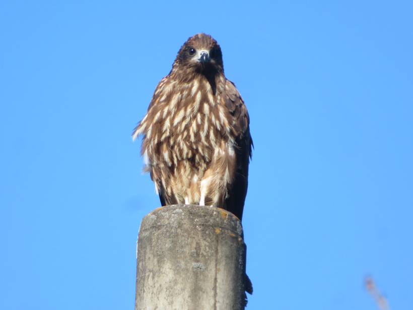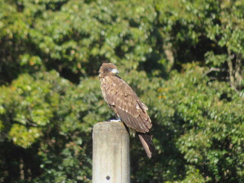 そっと地面に置くと、しばらくうずくまってじっとしていましたが、その後上手に飛び立ち、近くの電柱のてっぺんにとまり、2時間近く周囲を観察しつつ羽繕いなどをして、どこかへ飛んでいきました。もうケガしないように元気に過ごして欲しいです。