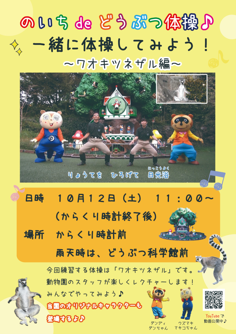 暑さのため、しばらくお休みしていました「のいち de どうぶつ体操♪一緒に体操してみよう!」イベントを10月より再開いたします!!