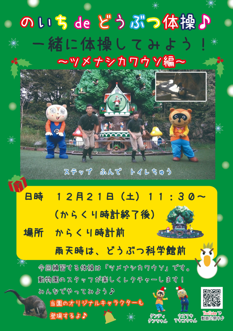 2024年12月21日(土) ※雨天の場合 どうぶつ科学館前ピロティー