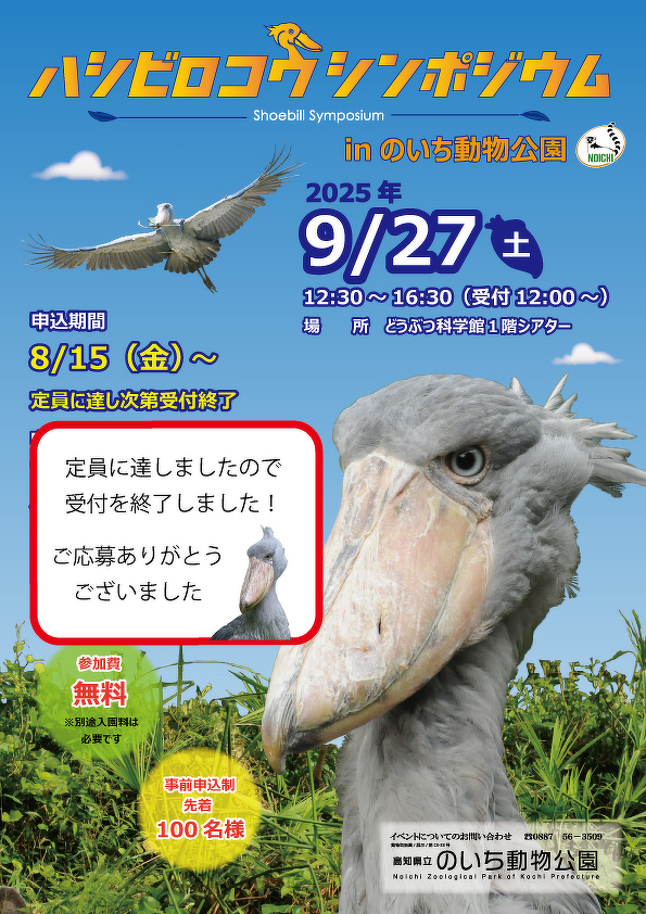 ※終了しました「ハシビロコウシンポジウム in のいち動物公園」開催について