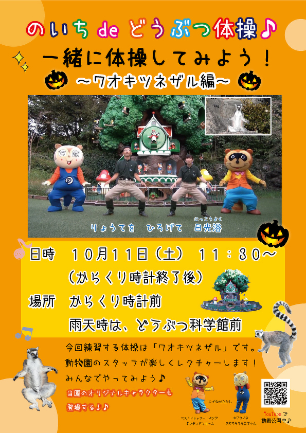皆さま、お待たせいたしました!暑さのため、夏季はお休みとしていた「のいちdeどうぶつ体操♪」レクチャーイベントを10月より再開いたします!