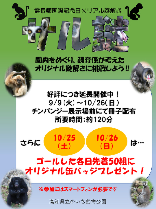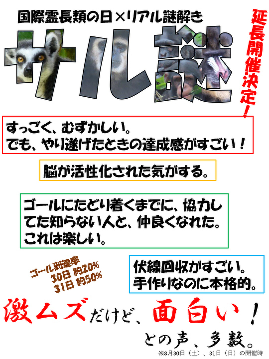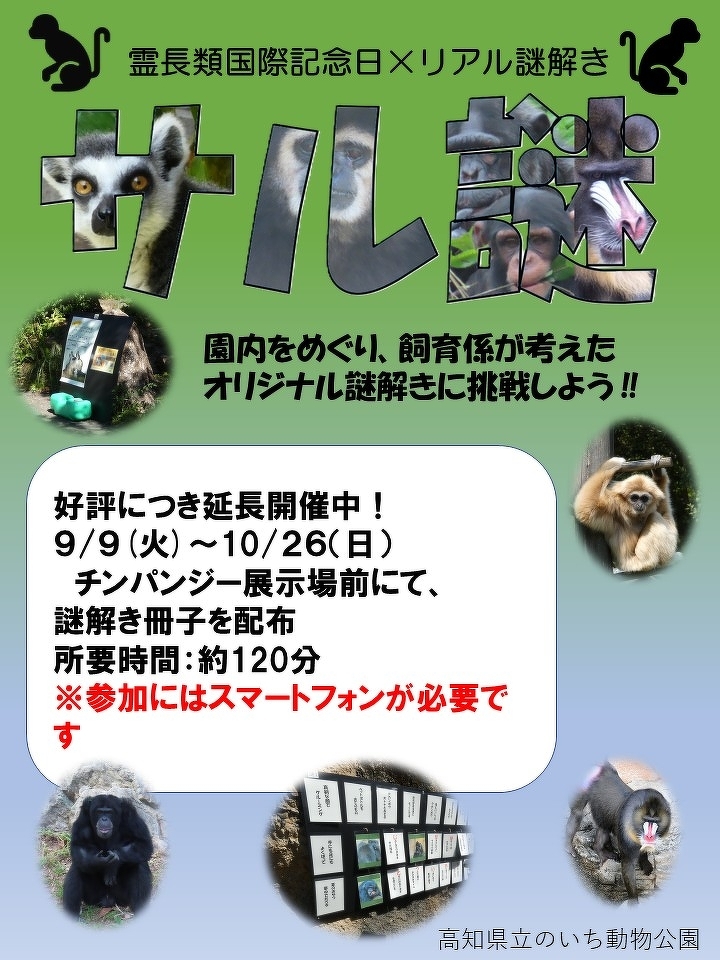 2025年9月1日は「国際霊長類の日」です。これに伴い、8月30・31日に『霊長類国際記念日×リアル謎解き』イベントを開催し、ご好評につき長期開催しています!