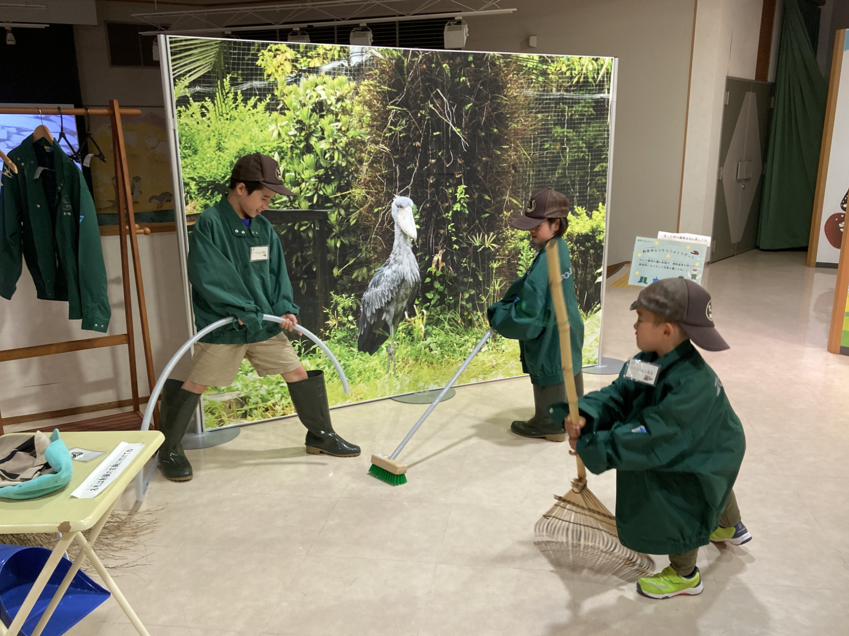 のいち動物公園の制服や、飼育係が使う道具を持って記念撮影しよう!これであなたものいちの飼育係☆