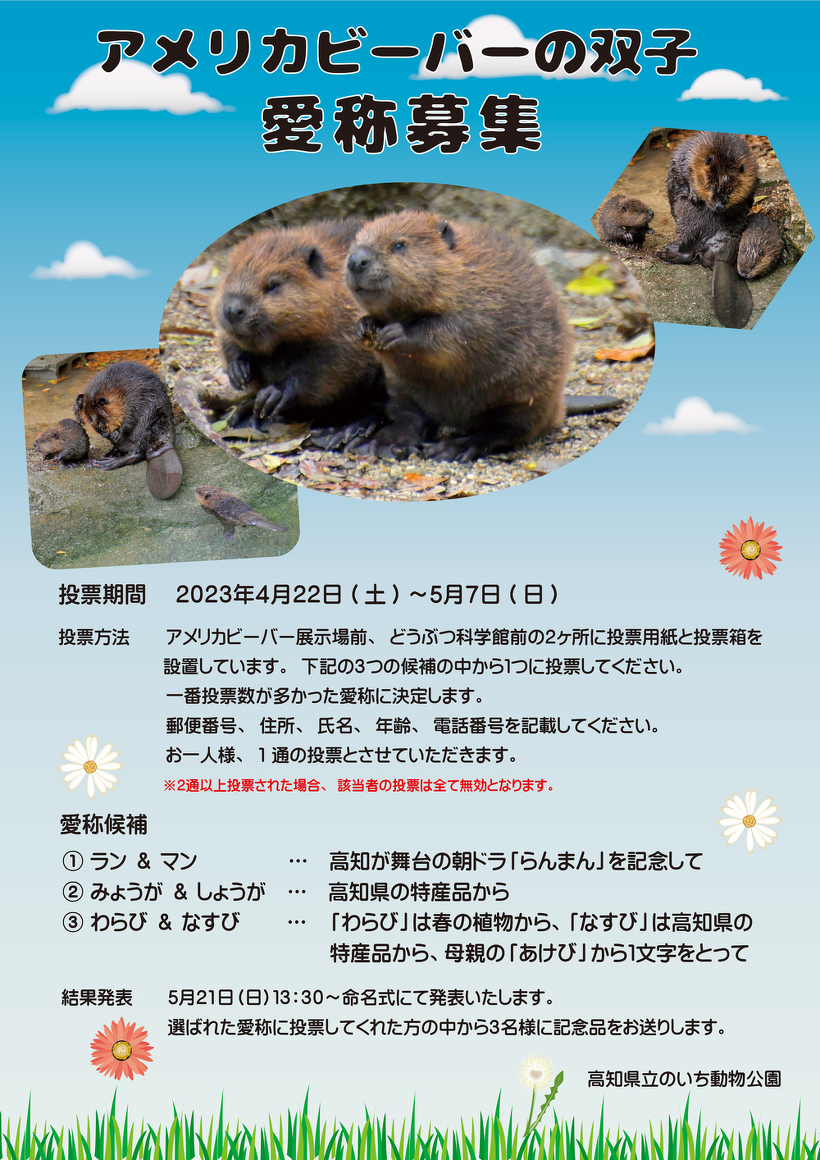 3月24日に生まれたアメリカビーバーの子どもの愛称を募集します。