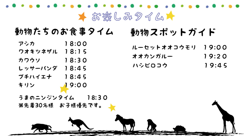 時間 17:00~20:30 場所 どうぶつ科学館前