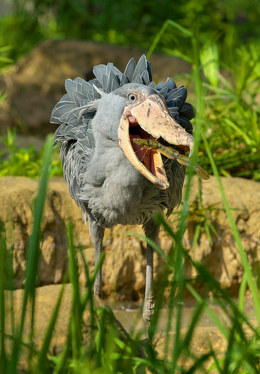 ハシビロコウがエサのドジョウをパクッと口に入れる、絶妙なタイミング。お見事です。おそらく、かなり腰をすえてシャッターチャンスをうかがっていたのではないでしょうか。