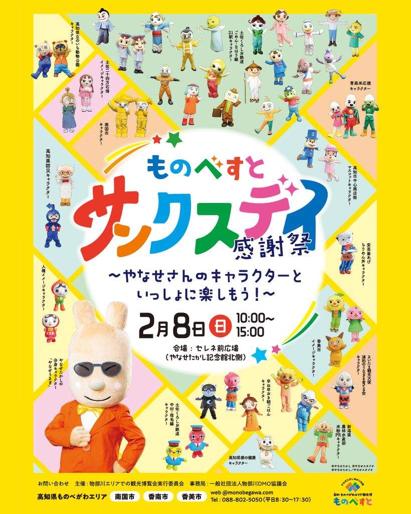 2月8日に、香美市立やなせたかし記念館北側のセレネ前広場にて『ものべすとサンクスイベント』が開催されます。