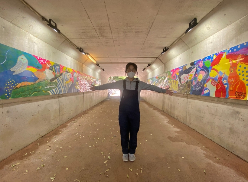 サバンナトンネルにイラストレーター柴田ケイコさんのイラストパネルが登場! 2021年04月26日(月) 園からのお知らせ 高知県在住のイラストレーター・絵本作家の柴田ケイコさんのイラストパネルがアフリカオーストラリアゾーンのサバンナトンネルに登場!写真は、完成時の柴田さん。とても素敵なイラストを本当にありがとうございました。