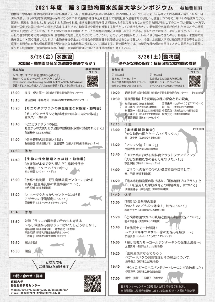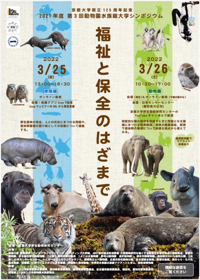 3月26日(土)に第3回動物園水族館大学シンポジウム「福祉と保全のはざまで」が開催されます。