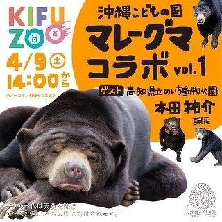 4月9日(土)13時30分からライブ配信される KIFUZOO沖縄こどものくに「マレーグマコラボvol.1」に、ゲストとして当園も出演します。ぜひご覧になってください。