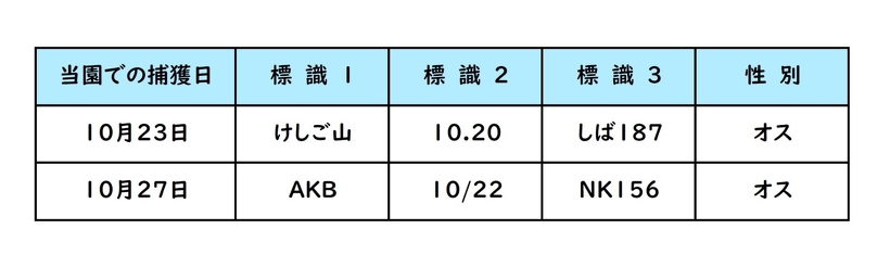 調査の中で、当園で再捕獲した個体の情報を下記に掲載します。