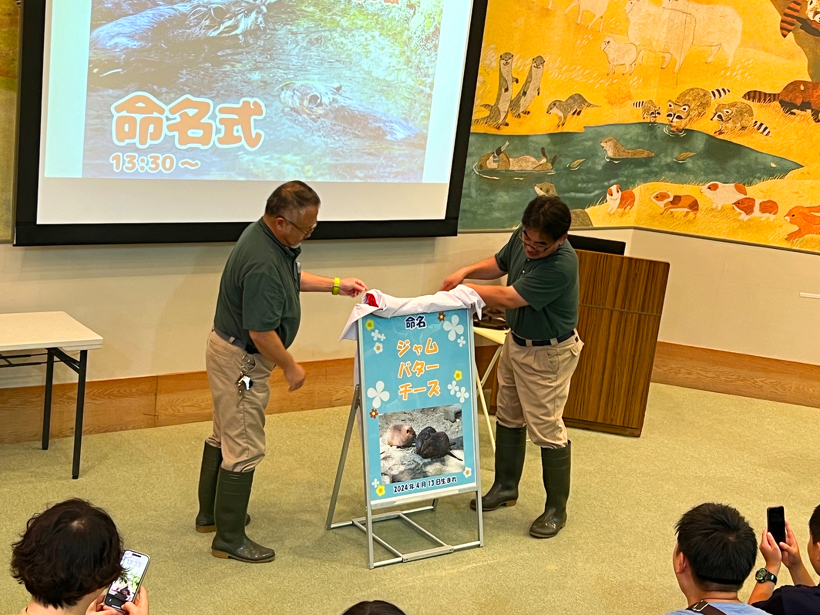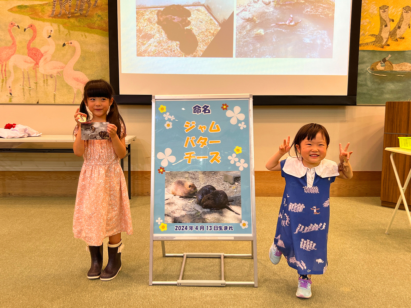 また、6月30日にどうぶつ科学館シアターで命名式を行いました。命名式にご参加いただいた方の中から抽選で2名様にオリジナルキーホルダーをプレゼントしました。