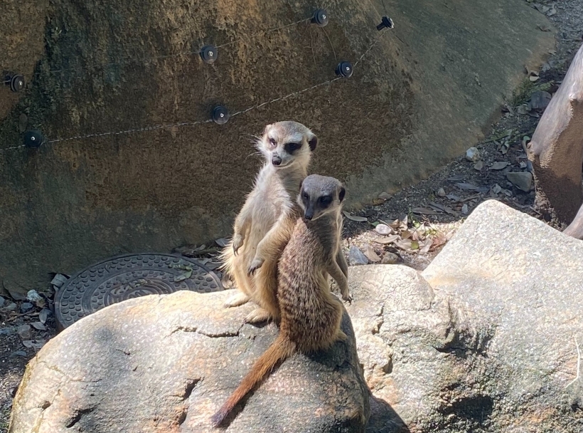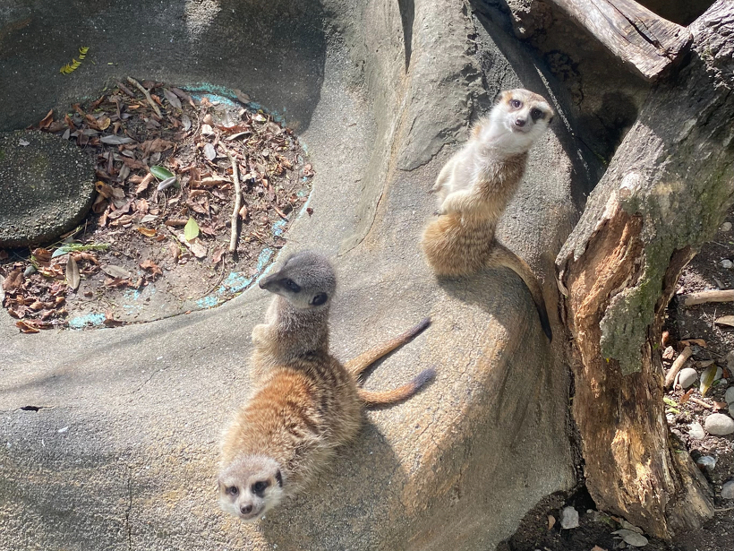 ミーアキャットの「ノドジロウ」と「ハナ」の一般公開を開始します 2024年11月07日(木) 動物ニュース 2024年6月に、いしかわ動物園より搬入されたミーアキャット「ノドジロウ」(オス)と「ハナ」(メス)の一般公開を開始します。 現在、「ノドジロウ」と「ハナ」はそれぞれ別の群れで暮らしており、午前か午後どちらかに展示場へ出てきます。展示場で2頭一緒にはご覧いただけませんのでご了承ください。 ※動物の体調等により変更となる場合がありますのでご了承ください。 上から「チョコ」(メス)、「ノドジロウ」(オス)、「ヒョッコリ」(メス) 左「チップ」(オス)、右「ハナ」(メス)