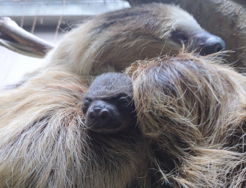 フタユビナマケモノの繁殖について 2025年02月02日(日) 動物ニュース 2025年2月1日の朝にフタユビナマケモノ「キュウ」が出産しました。 子どもをしっかり抱いていて、親子とも元気そうです。オス親は2024年8月17日に死亡した「アミーゴ」です。 これで展示場には親子2頭になりました。 2月2日の朝の様子です