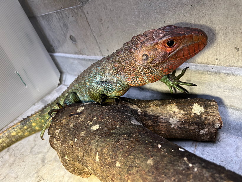 ガイアナカイマントカゲがやって来ました 2025年03月13日(木) 動物ニュース 2025年3月13日(木)に神戸市の水族館AQUARIUM×ART átoaよりガイアナカイマントカゲ1頭(性別不明)が仲間入りしました。当園での飼育は初めてとなります。 アトアの職員の方と一緒に、陸路にてはるばる神戸からやって来ました。到着後は落ち着いており、部屋の中を歩いて探索していました。今後はジャングルミュージアムにて展示予定です。一般公開日は未定ですが、決まり次第お知らせいたしますので、公開日まで今しばらくお待ちください。