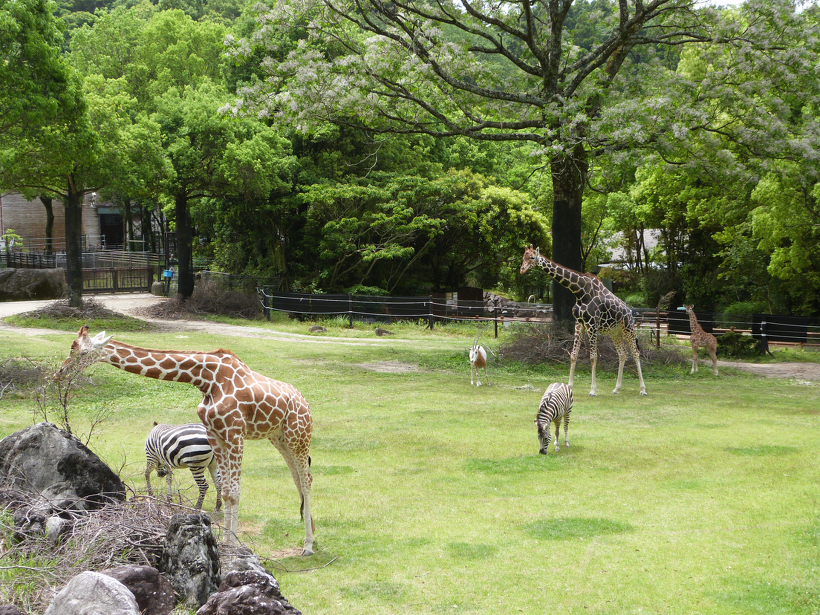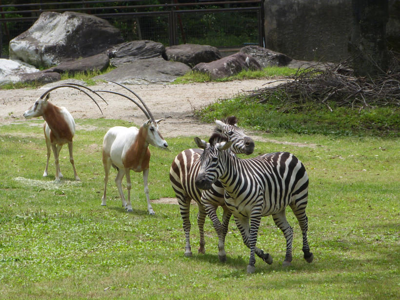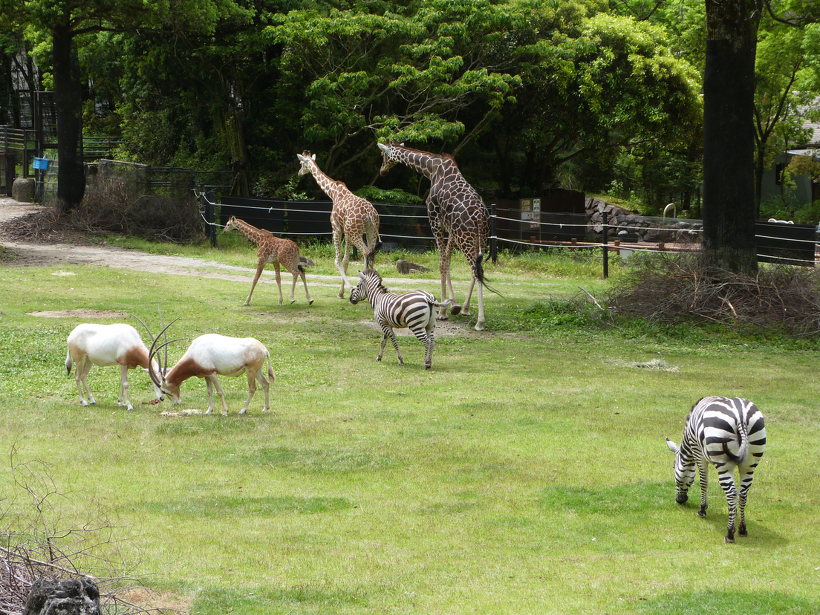 サバンナ大展示場での3種混合展示について 2025年05月19日(月) 動物ニュース 2025年5月19日(月)の休園日に、サバンナ大展示場にてアミメキリン3頭、シロオリックス2頭、そしてグラントシマウマの「ミライ」と「モミジ」、3種での同居練習を行いました。 サバンナ大展示場での動物3種の混合展示は、2016年にセーブルアンテロープが死亡して以来、約9年ぶりとなります。 今回の同居練習では、座って休んだり、それぞれ餌を食べていたりと落ち着いていました。これから、3種の関係性を安定させていきたいと思います。