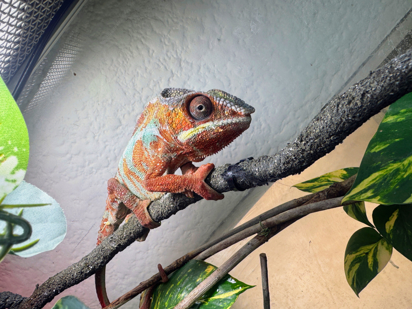パンサーカメレオンが死亡しました 2025年09月24日(水) 動物ニュース 2025年9月22日(月)に、パンサーカメレオン(オス・4歳)が死亡しました。春ごろから体調を崩しており、最近はバックヤードで療養していました。その中でも、体調の良い時には、快調に動き回ったり採食を見せてくれました。カメレオンなのに舌を伸ばす採食が苦手な様子を見せる、独特な魅力のある個体でした。 ※これに伴い、現在パンサーカメレオンの展示は行っておりません。