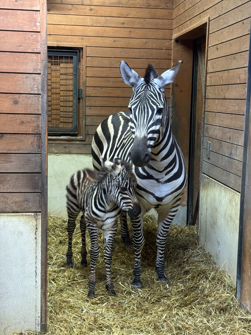 グラントシマウマが生まれました 2026年01月29日(木) 動物ニュース 2026年1月28日(水)に、グラントシマウマの「モミジ」が出産しました。 子どもは立ち上がり、「モミジ」から離れないよう側について歩いています。 授乳も確認され、母子ともに健康そうです。 寒い日が続いているため、体調管理に十分留意しながら母子のサポートを行っていきます。なお、引き続き展示はしばらくお休みさせていただきます。
