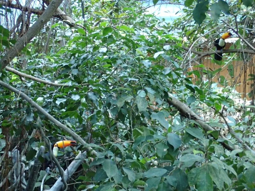 オニオオハシ「タイヨウ」の展示がはじまりました。 2021年12月21日(火) 動物ニュース オニオオハシはオスの「ユズ」が1羽でいましたが、新しい仲間としてアドベンチャーワールドからメスの「タイヨウ」がやってきて展示の練習を始めました。まだお互いに距離がありますが、相性は悪くないようです。まだ広い展示場になれていないので、オニオオハシの安全のためにヤブイヌとメガネカイマンの展示場にネットをはっています。ネットでしばらくの間見えづらくなりますことをどうかご了承ください。