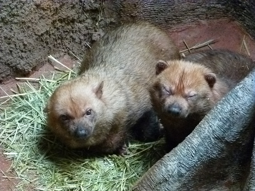ヤブイヌ「スマイラー」展示再開のおしらせ 2023年05月02日(火) 動物ニュース 妊娠の可能性があり展示をお休みしていた「スマイラー」ですが、残念ながら出産には至りませんでした。3月下旬までは体重が増加しており、一時的に食欲の変化もありましたが、その後は体重の増加もなくなりました。また、今後に期待したいと思います。 「カツマル」も退屈そうにしていましたが、2頭での展示(今のところは午前中のみ、午後はカツマル)を5月3日から再開しますので、2頭で仲良く過ごす様子をご覧ください。