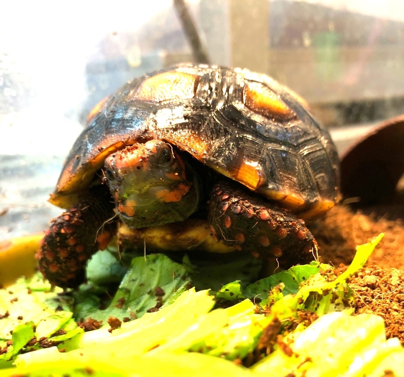 アカアシガメ幼体の展示が始まりました 2023年09月29日(金) 動物ニュース 2023年3月16日に誕生し、9月27日に展示場へ移動しました。産まれた日は28gでしたが、200gまで大きくなりました。名前は「うちわ」です。バックヤードから展示場へ移動した翌日から、モリモリ食べる姿を見せてくれましたが、初めての環境に慣れておらず見えにくいこともあります。温かく見守っていただけると嬉しいです。