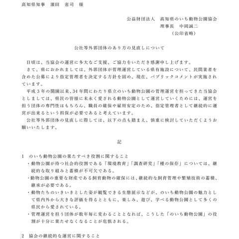 県立施設指定管理公募に関する意見書提出について