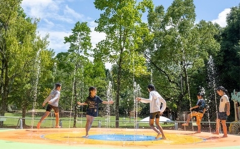 令和3年7月に新設されました。直径13メートルの円形広場の噴き出す水で水遊びが楽しめます。※小学生以下のお子様対象